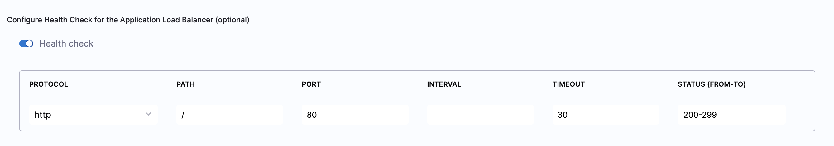 Toggle the Health check button to configure the health check. Health check status should be successful for the AutoStopping rules to come into effect. Set a health check for the underlying application that is running on the cloud resources managed by this AutoStopping rule. The load balancer periodically sends requests as per the settings below to the application. If your application does not support health check or you do not have any application running, you can disable the health check.