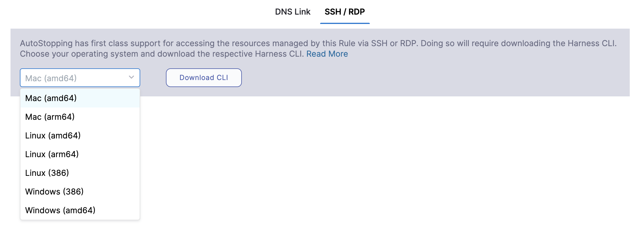 - Setup Access for TCP workload or SSH/RDP: If the underlying applications running on the resources managed by AutoStopping Rule are accessed via TCP, SSH or RDP. You could skip this step for now and use the CLI to set up access. Go to Use the Harness CLI to access resources through SSH/RDP for details.