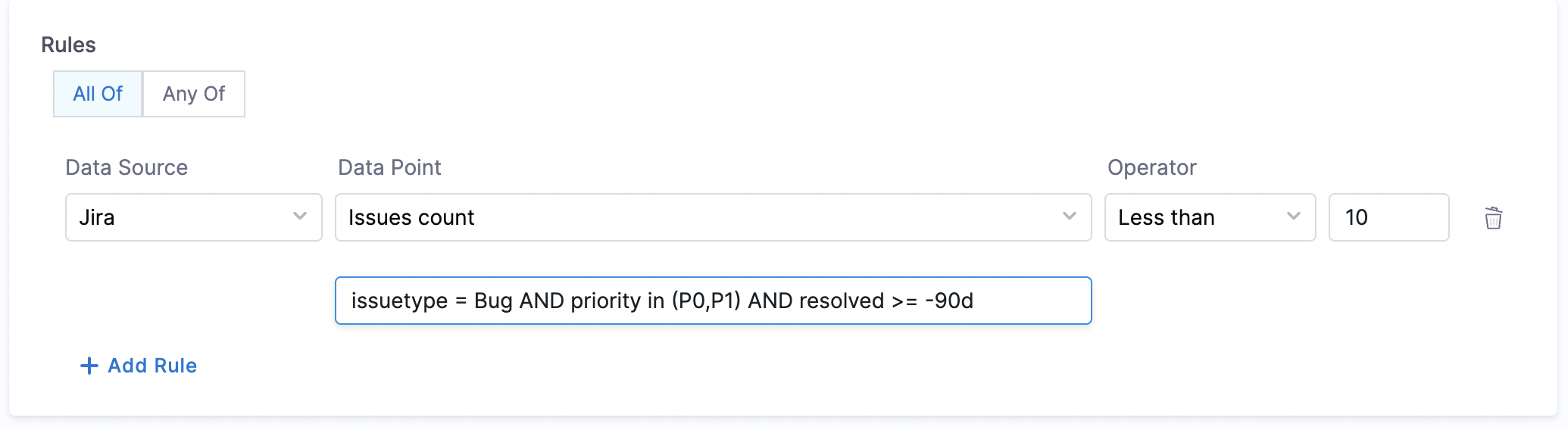 - Is on-call Set - This data point can be used for creating rules that will check if the on-call is set for a given service.
