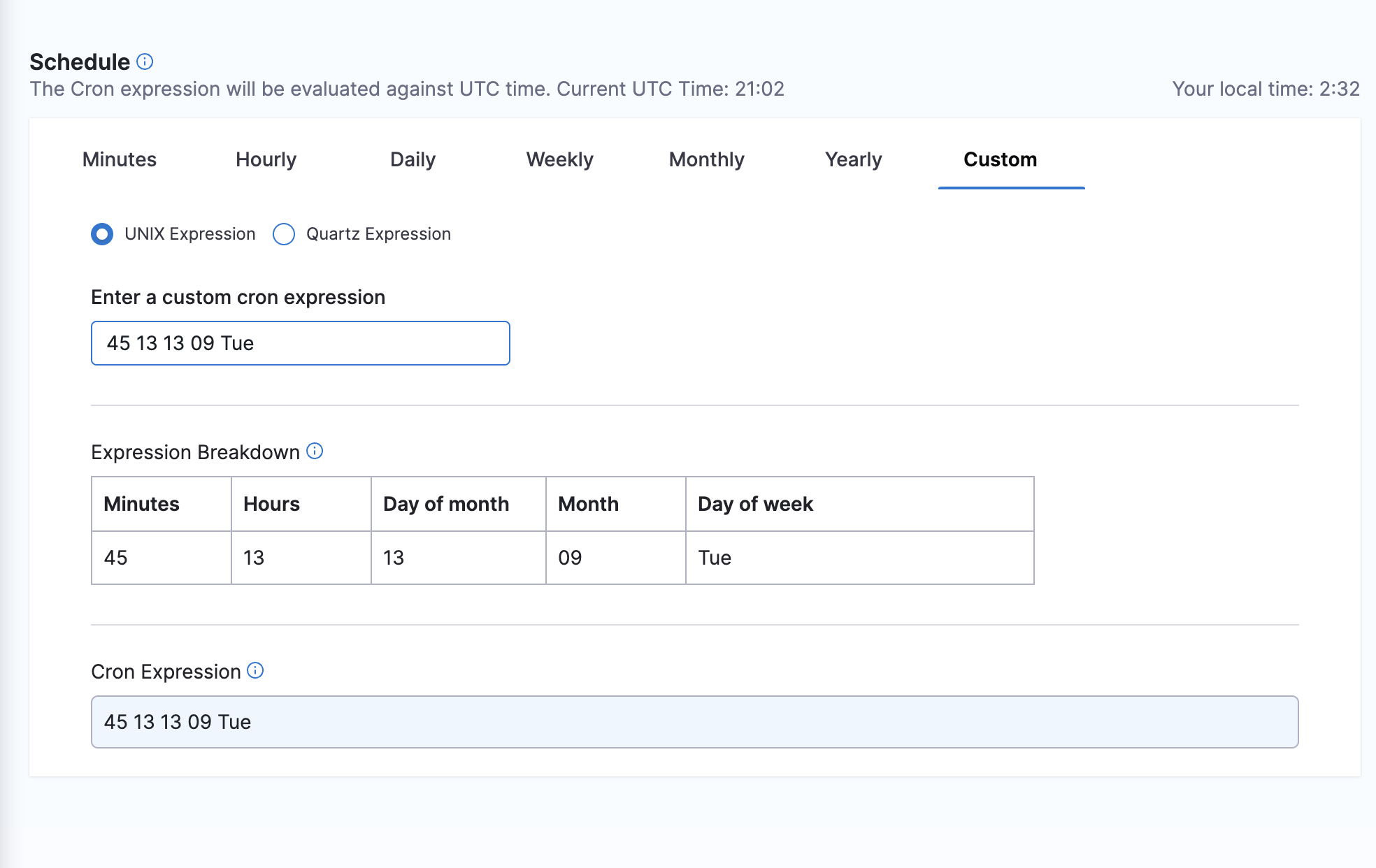 There are two types of supported cron expressions, QUARTZ and UNIX.